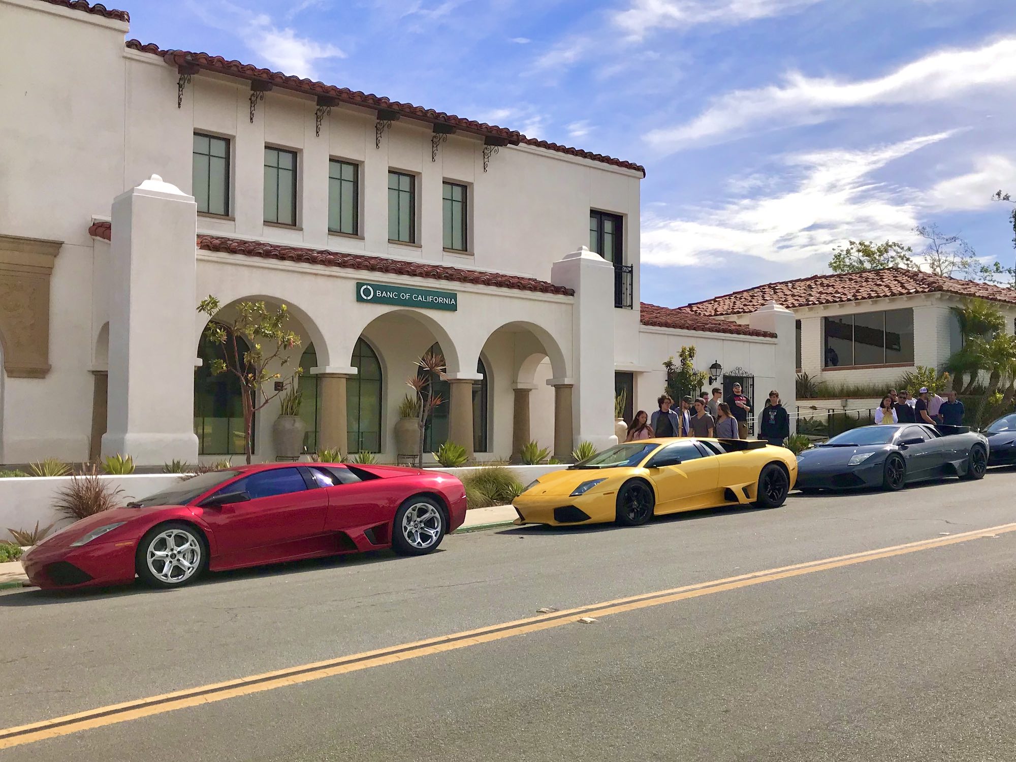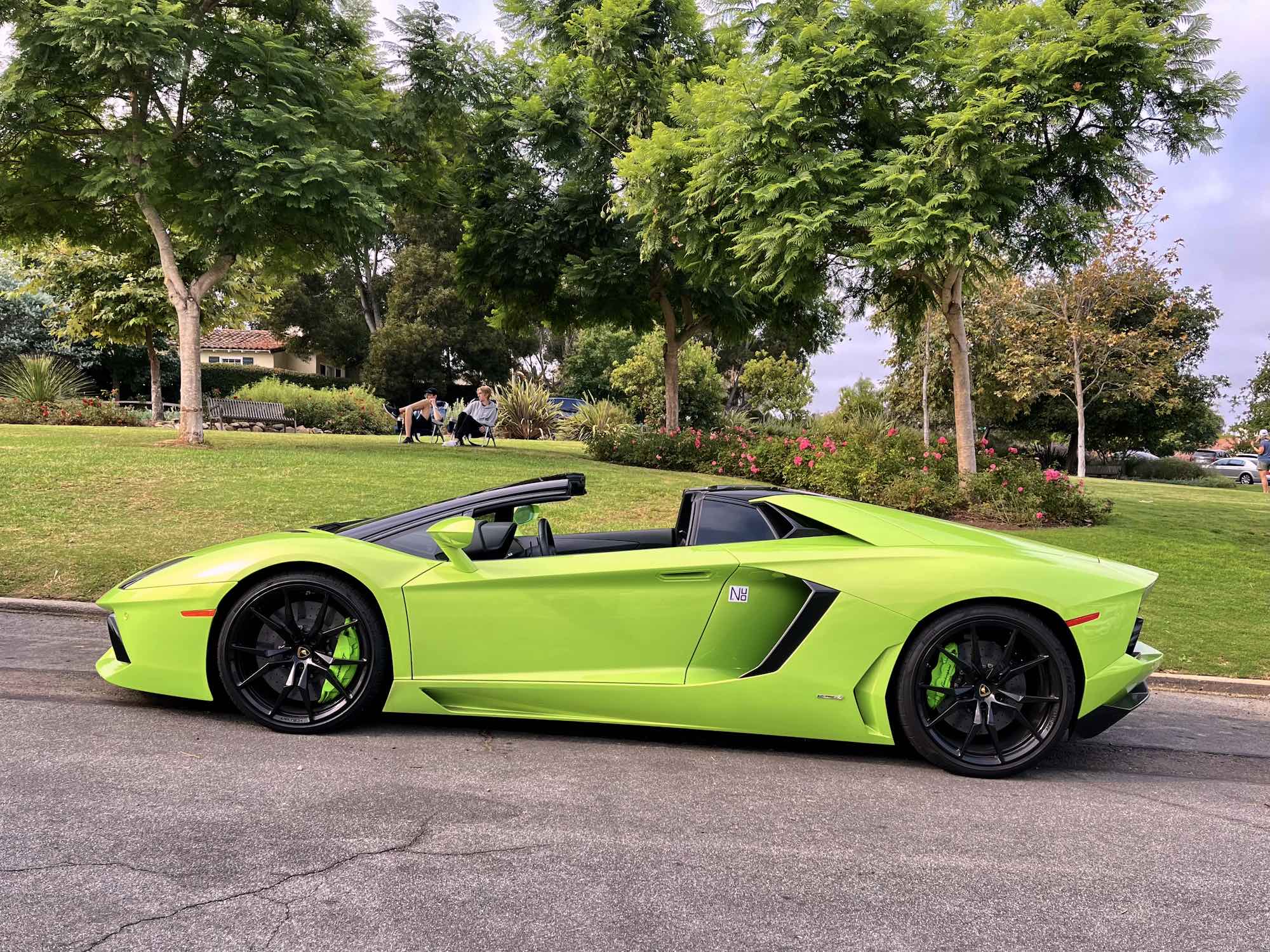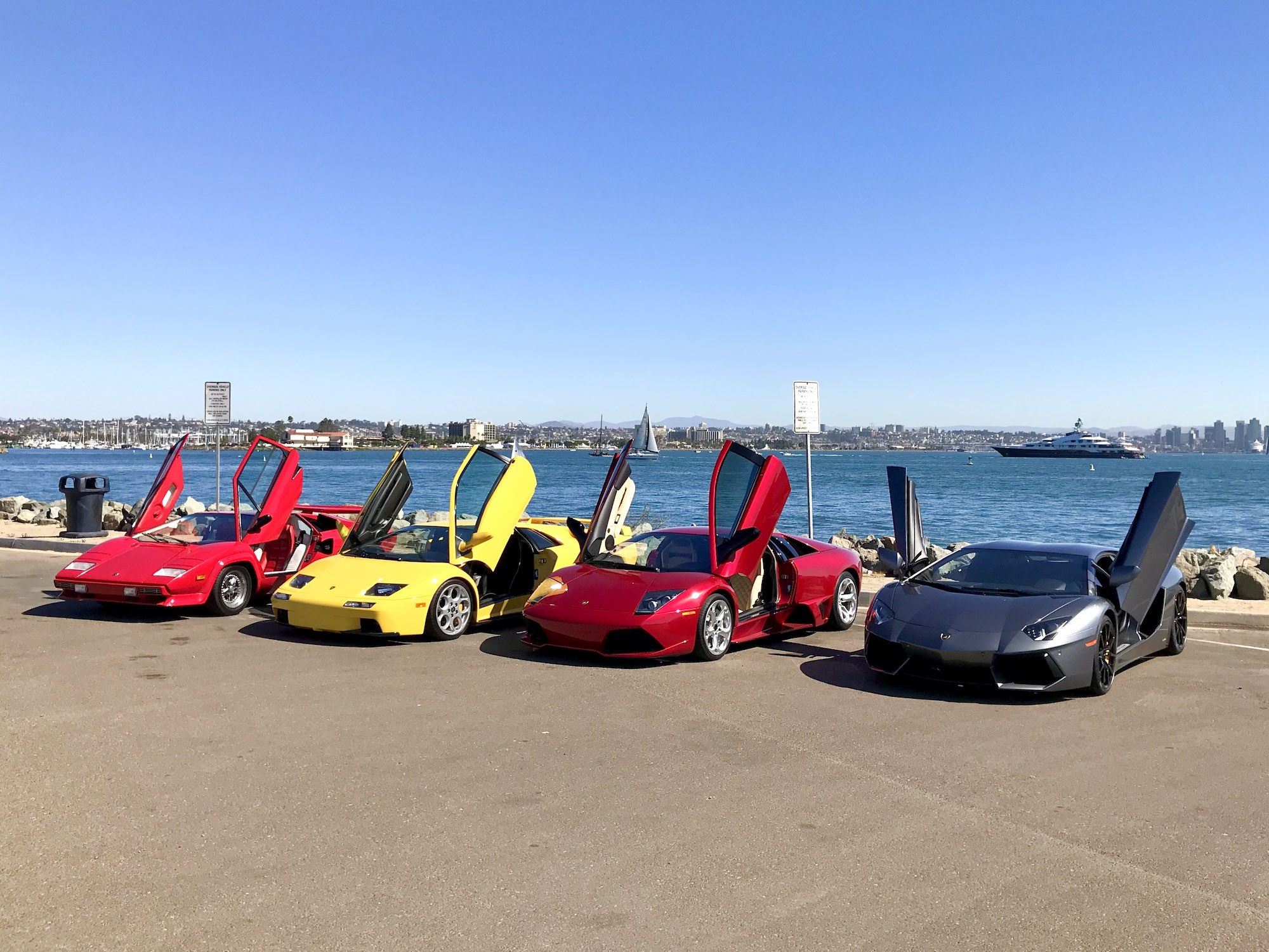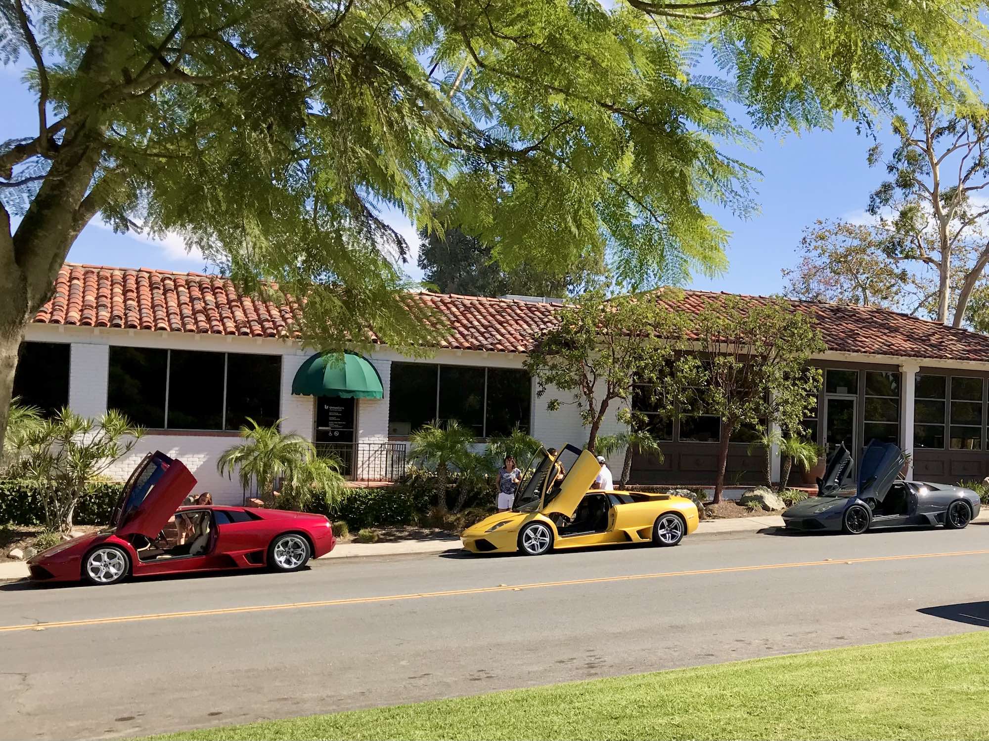 The Lamborghini Aventador, Countach, and Murciélago displaying their flamboyant scissor doors.